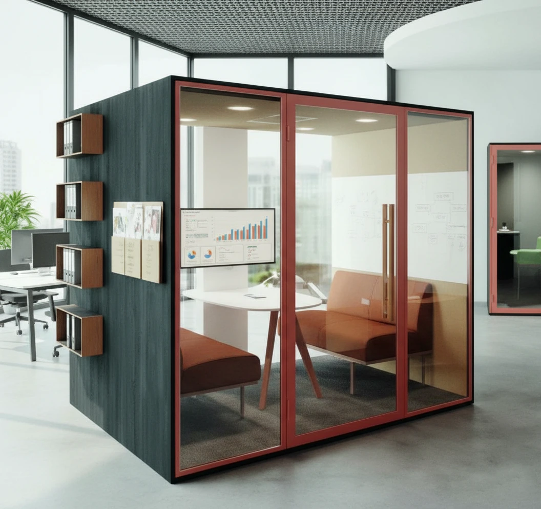 Com divisórias acústicas, painéis fonoabsorventes, cabines individuais e materiais que reduzem eco e ruído.